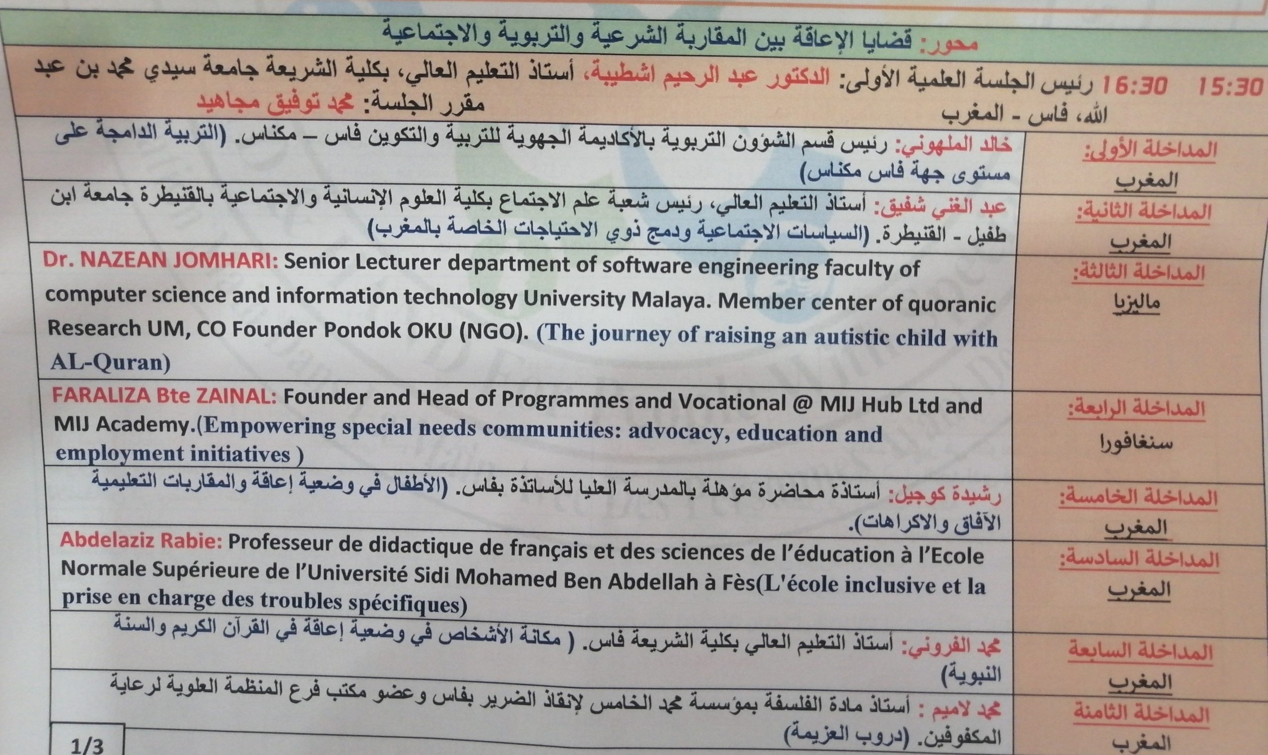 و سهرت الأكاديمية الجهوية للتربية والتكوين لجهة فاس مكناس على تنظيم هذا المؤتمر بشراكة مع كلية الشريعة بجامعة سيدي محمد بن عبد الله و جمعية يدا في يد مع ذوي الاحتياجات الخاصة و المنسقية الجهوية للتعاون الوطني المديرية الجهوية للصحة و الحماية الاجتماعية و المديرية الجهوية للشباب و الثقافة و التواصل و جمعية قافلة نور و الفدرالي الوطنية الجمعيات أولياء التلاميذ.